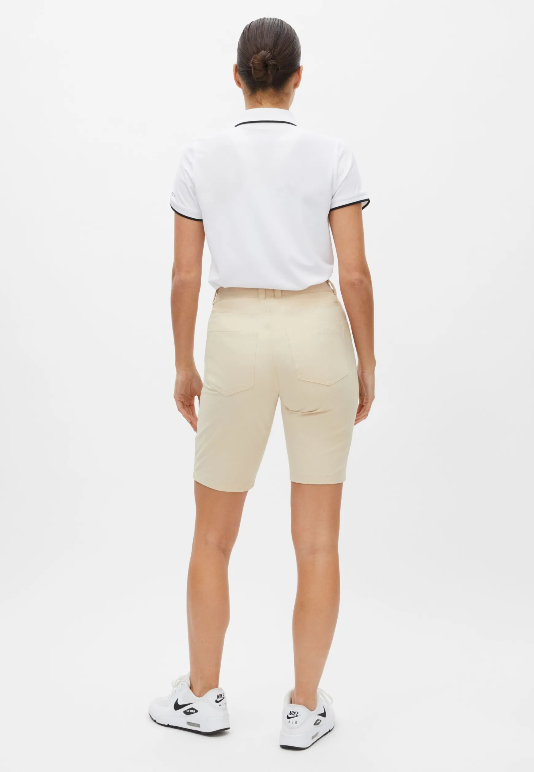 The Chie comfort bermuda is made in recycled polyester and comfortable elastane – a super soft and thin twill fabric with a flexible 4-way stretch. These bermuda pants with a slit at the leg opening are also equipped with quick-drying and wrinkle-free functions. Made for a regular fit and slim legs with an inseam measuring 27,5 cm in size 40.