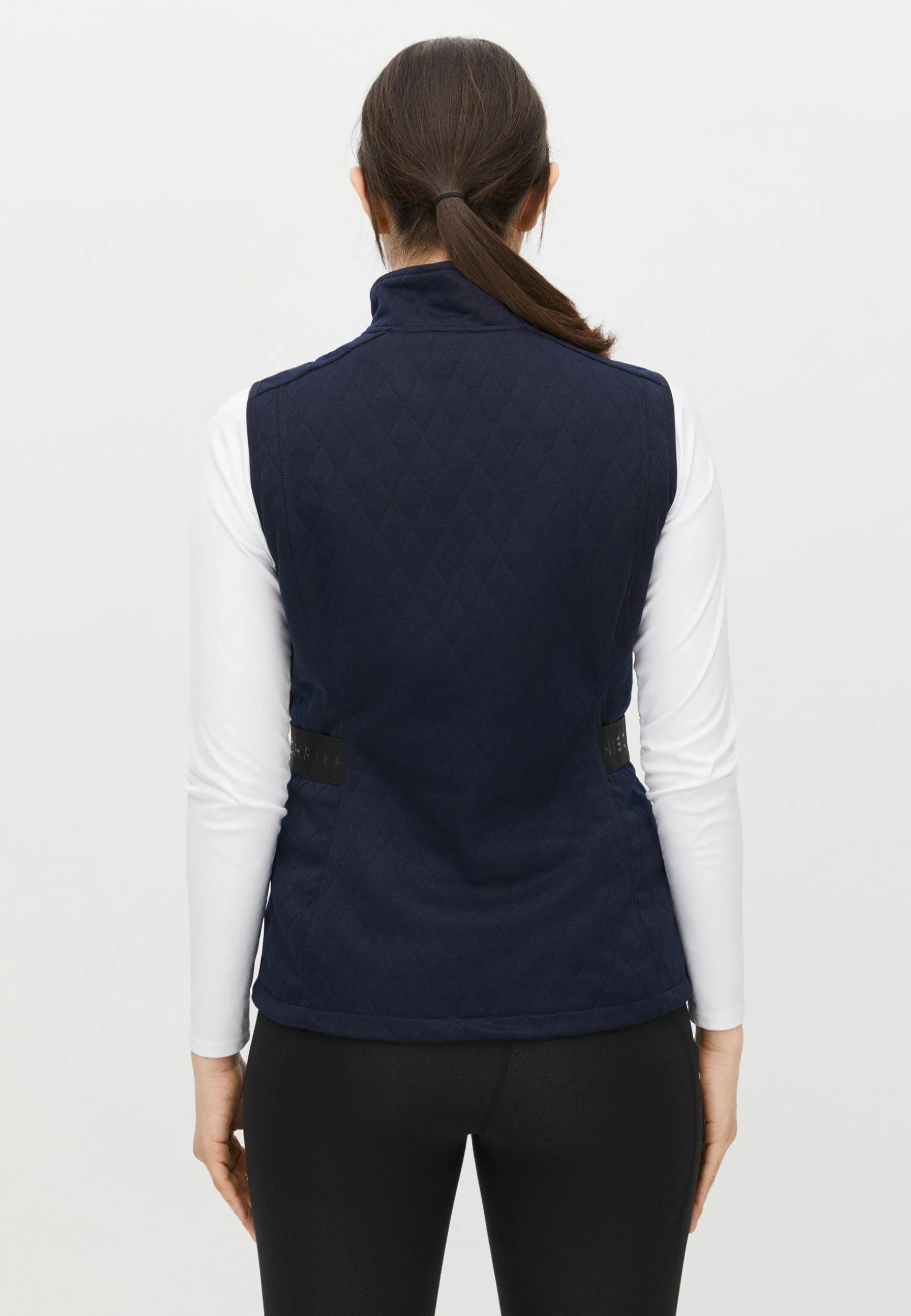 Leah is a wind vest made in recycled polyester – a fabric with function. It’s moisture-wicking and has a breathable wind resistant stretch lining. Leah is designed with a classic diamond quilt design and has pockets with zippers in the front. Made for a regular fit and available in the timeless color options navy and beige. The result is a functional vest, keeping you dry and at an ideal temperature, with an elegant design.