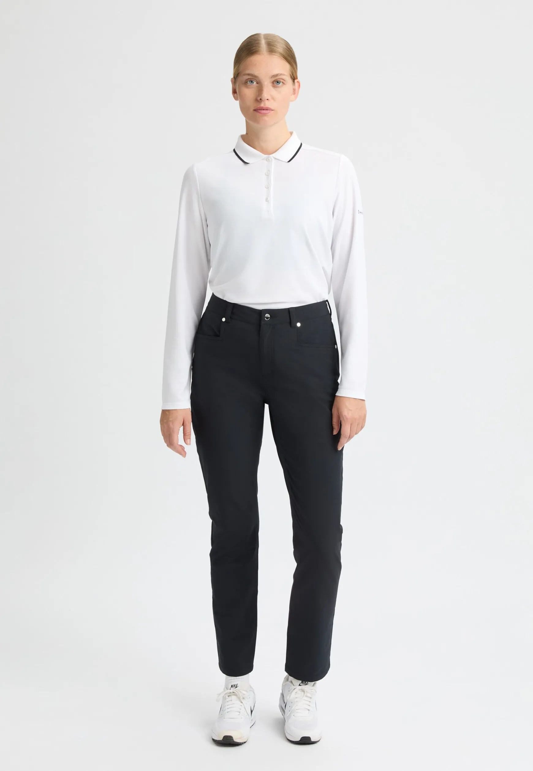 The Chie brushed pant is made in recycled polyester, a super soft twill fabric with a brushed and warming inside. Equipped with a 4-way stretch, quick-drying and wrinkle-free functions. Made for a regular fit with slim legs, inseam measuring 76 cm in size 40.